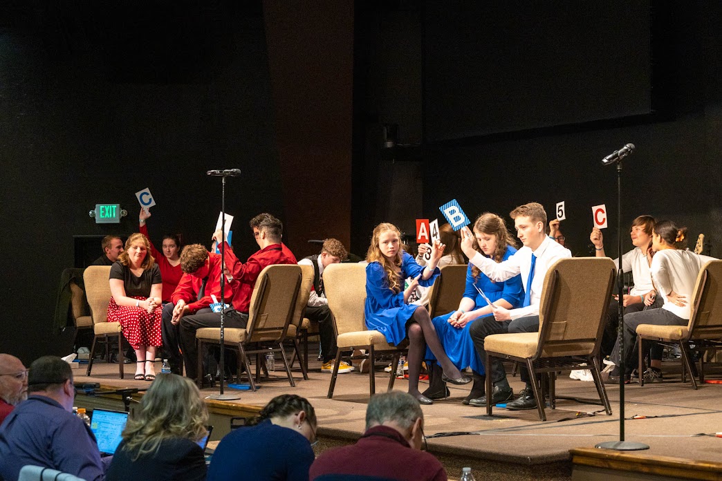 Awana encourages guys to wear collared shirts and slacks. Girls are encouraged to wear dresses, skirts or dress pants. Remember that the quizzers lean forward in their huddle and that they may be placed on a stage or platform. Please make sure they dress and sit appropriately not drawing attention to themselves or their team.